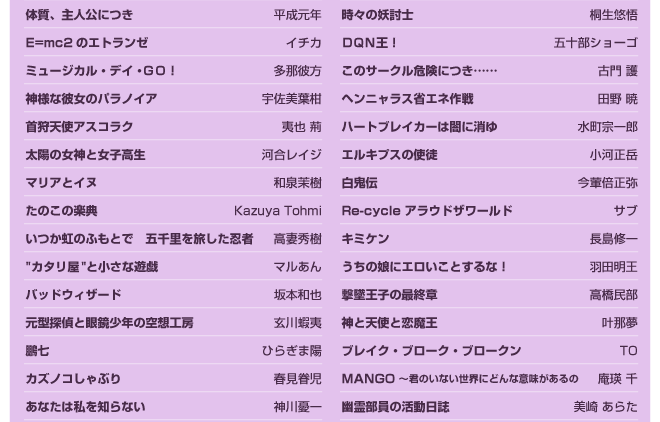 第04回集英社ライトノベル新人賞(SD文庫) 第二次選考通過作品